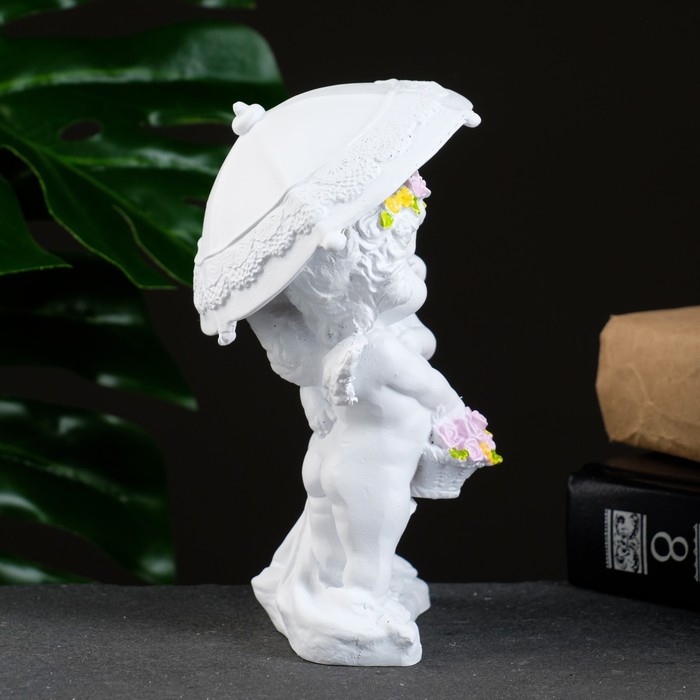 Фигура "Ангелочки под зонтом" белый 9х11х15см