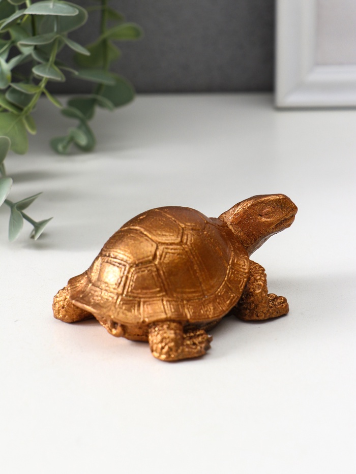 Черепаха из гипса с бронзовым лаковым покрытием выглядит как настоящее произведение искусства. Универсальная тематика позволяет ей органично вписаться как в классический, так и в современный интерьер. Она станет прекрасным подарком для тех, кто ценит не только эстетику, но и глубокую символику — ведь черепаха во многих культурах олицетворяет стабильность, мудрость и движение вперед, несмотря на кажущуюся медлительность.