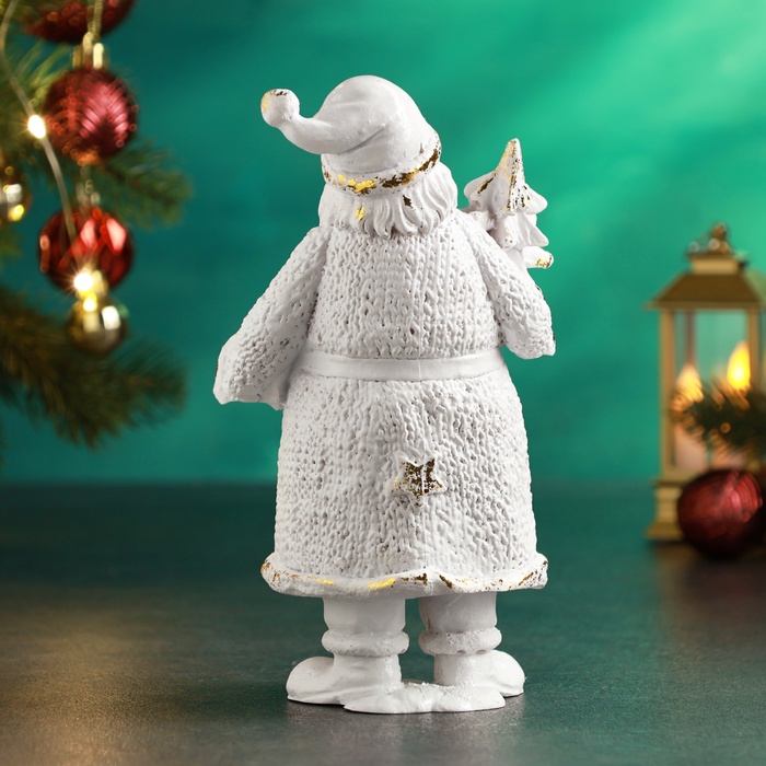 Фигура "Дед Мороз вязаный большой" 20х12х8см, белый с позолотой