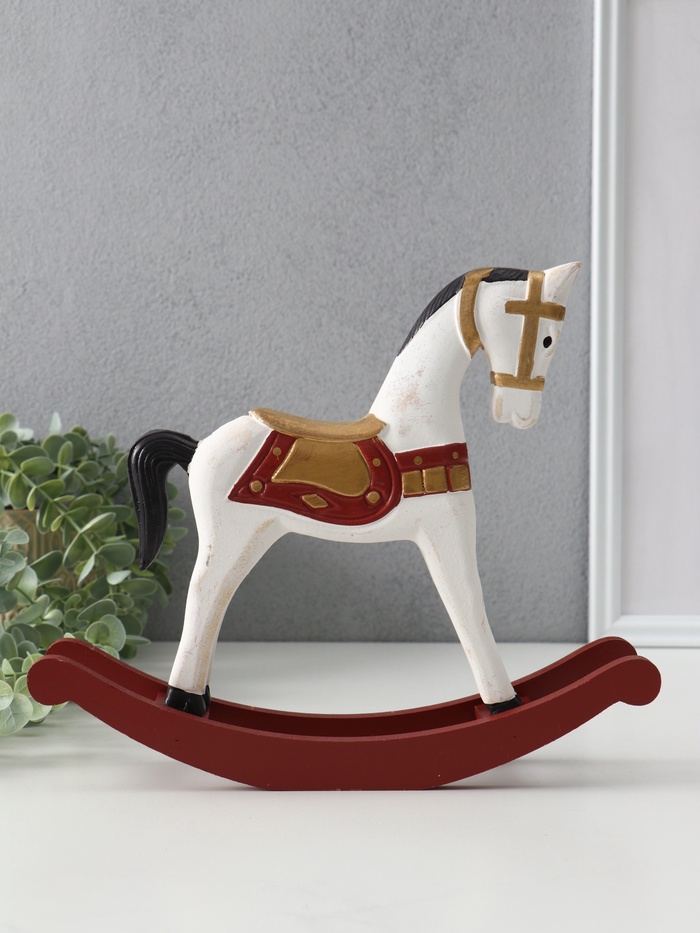 Деревянная лошадка-качалка в белоснежном исполнении с изящным золотым седлом — это не просто декоративная фигура, а воплощение тёплой ностальгии и современного праздничного настроения. Её присутствие в интерьере создаёт атмосферу уюта, а символика лошади — покровительницы 2026 года — мягко напоминает о приближающихся переменах к лучшему.