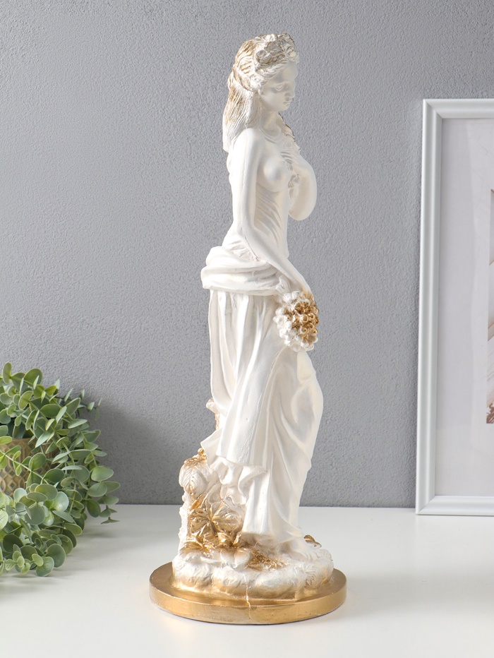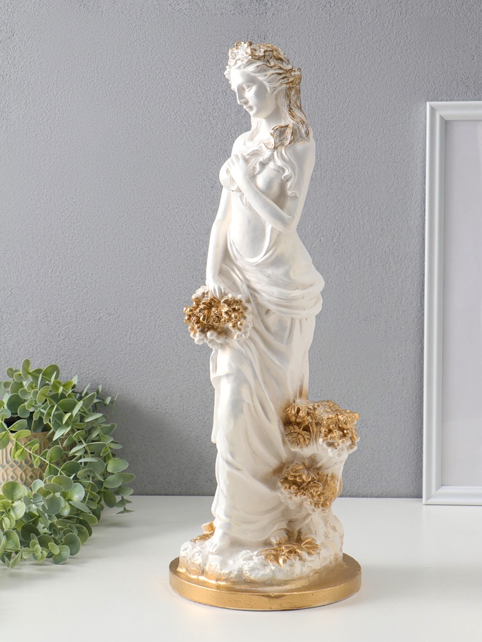Фигура "Девушка с виноградом" белый с золотом, 50х20х20 см