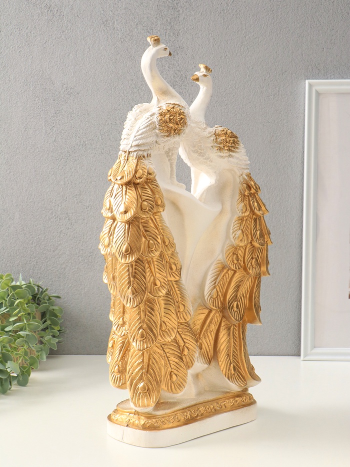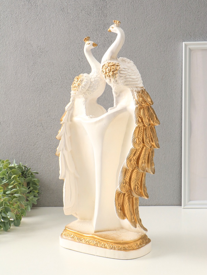 Фигура "Две Жар-птицы" белый с золотом, 55х30х14 см