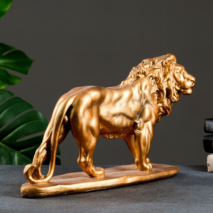 Фигура выполнена из качественного гипса с эффектом бронзирования, что придаёт ей сходство с антикварными изделиями. Компактные размеры (45×14×27 см) позволяют гармонично вписать её в любой интерьер — от кабинета до гостиной. Лев, как символ мужества и власти, станет не просто украшением, но и сильным талисманом, особенно для представителей знака Льва.