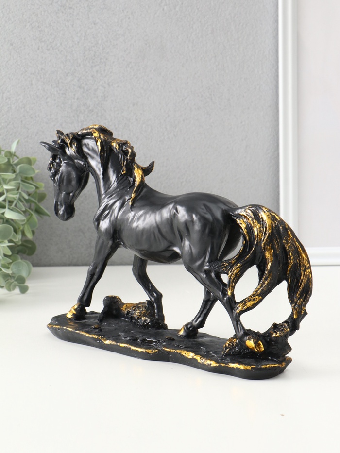 Фигура "Лошадь на камне" 20х29х7,5 см, чёрный с позолотой