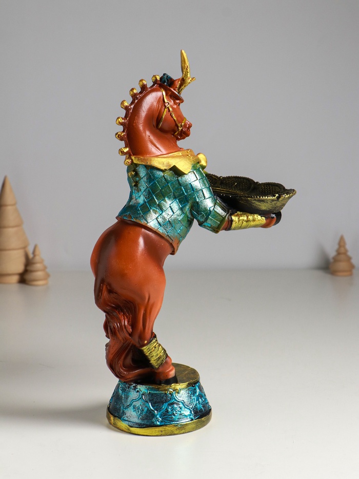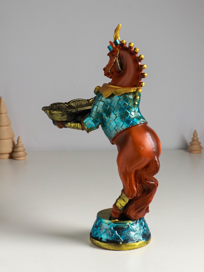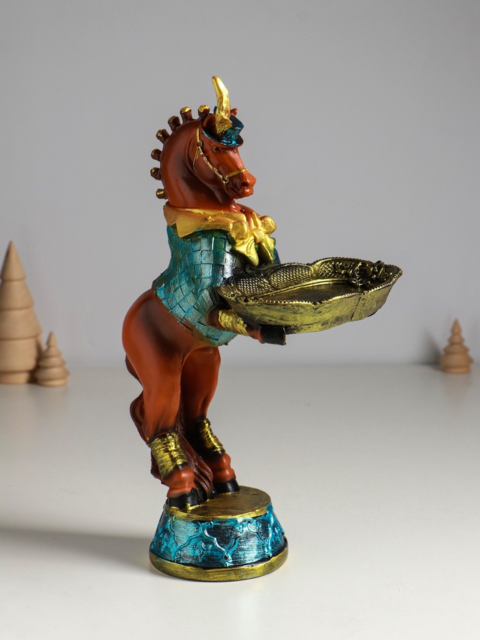 Удобный поднос, который лошадь держит с грацией, станет идеальным местом для хранения ключей, мелочи или других небольших вещей, которые всегда должны быть под рукой. Изящные линии и яркий, сочный окрас сразу привлекают внимание, даря интерьеру индивидуальность и динамику.