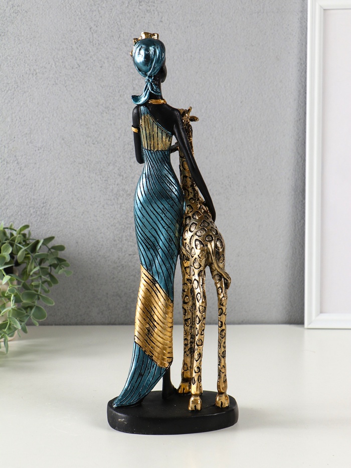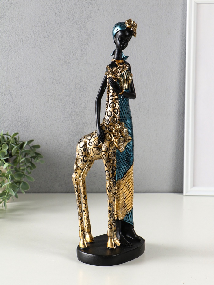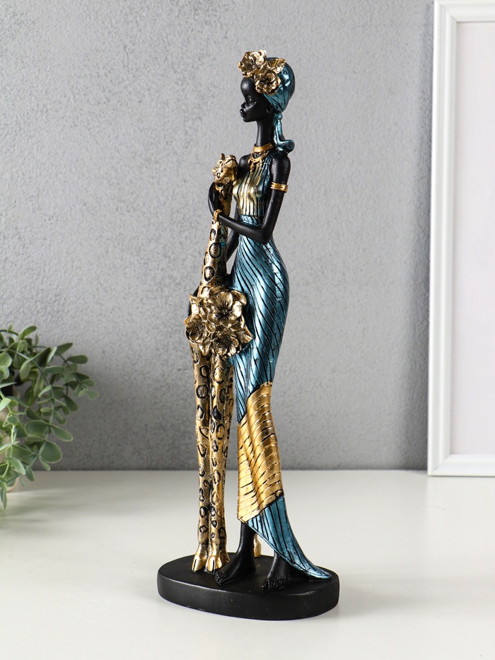 Эта скульптура африканской женщины в платье с жирафом станет ярким акцентом, наполняющим пространство энергией сафари и духом авантюры. Её динамичный силуэт и сложная ручная роспись создают ощущение движения и жизни, превращая интерьер в уникальное арт-пространство.