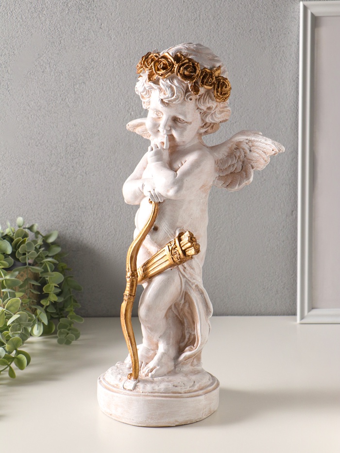 Ангел с луком — это изящная скульптура, которая привносит в пространство ощущение нежности и светлой защиты. Фигура передаёт момент задумчивости и готовности, балансируя между детской непосредственностью и глубокой символикой.