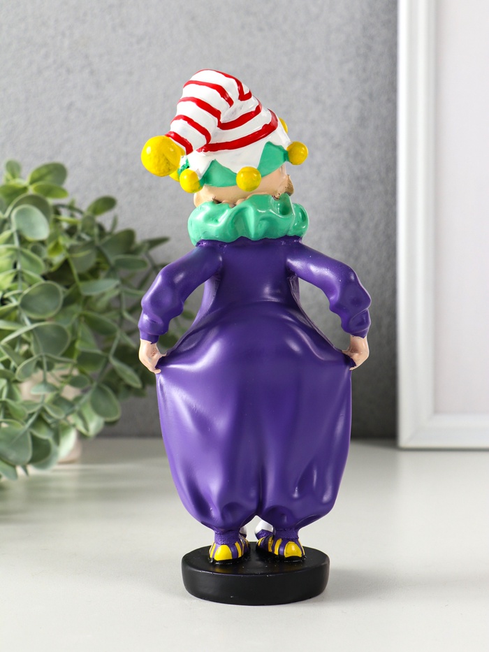 Очаровательная фигурка «Клоун в синем костюме» станет ярким акцентом в любом интерьере и подарит нотки радости и веселья в ваш дом. Эта скульптура из полистоуна мастерски передаёт дух праздника, делая её идеальным элементом декора для дня рождения или другого торжества.