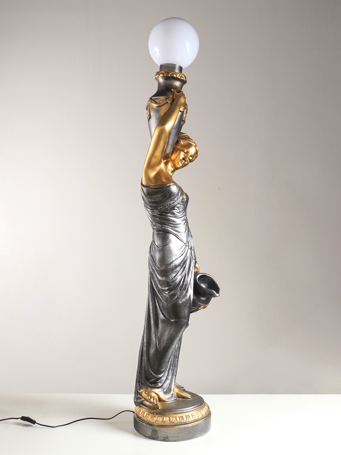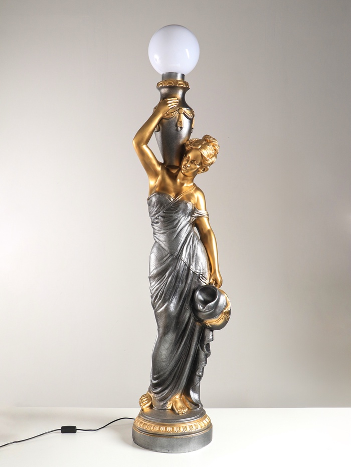 Фигура со светильником "Гречанка " бронза с золотом, 145/166х34х30 см