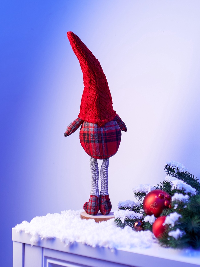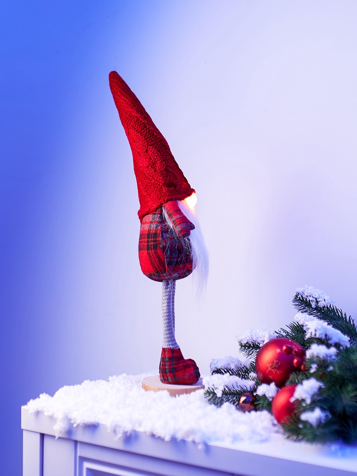Фигура текстиль «Гном в красном» 55 см, 1 LED, от батареек AG13×3, свечение тёплое белое