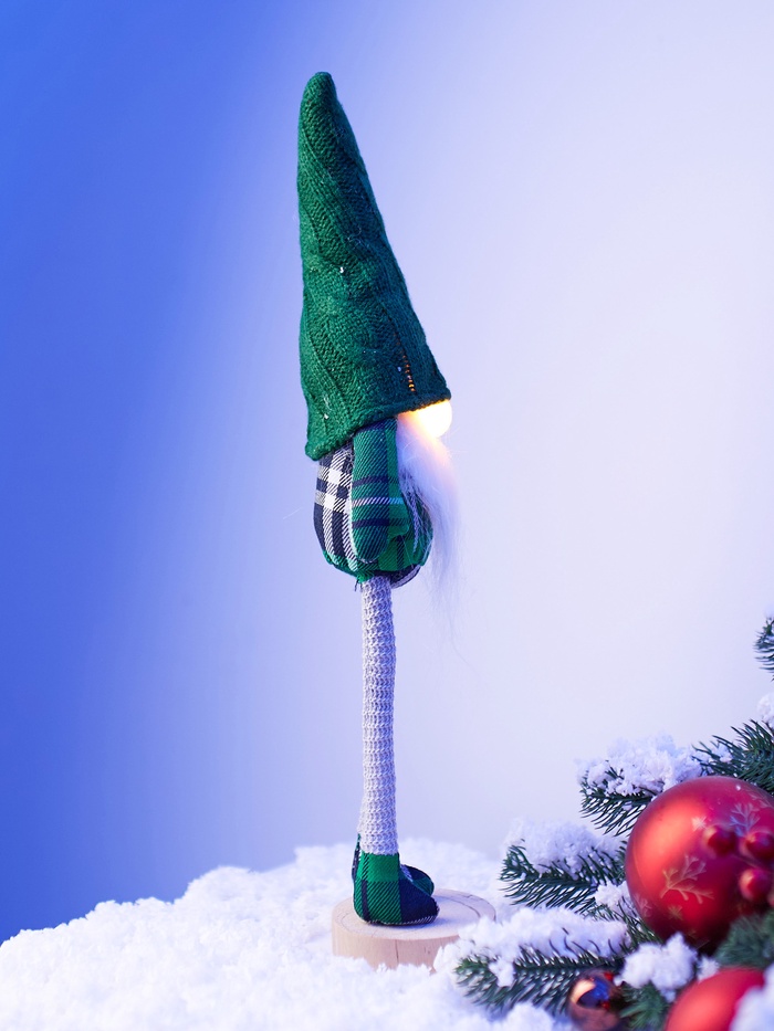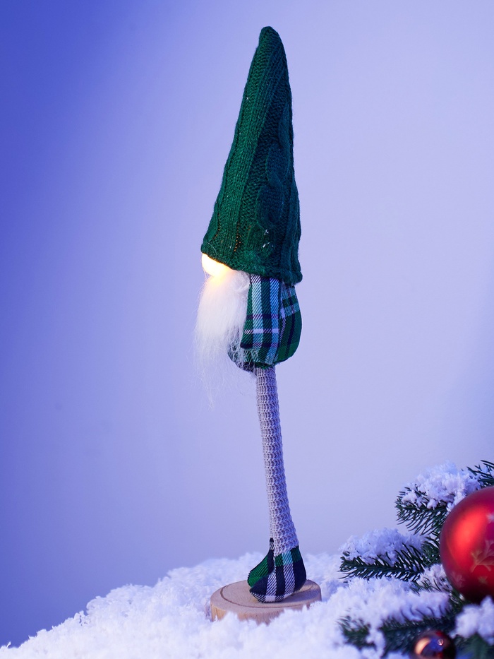 Фигура текстиль «Гном в зелёном» 42 см, 1 LED, от батареек AG13×3, свечение тёплое белое