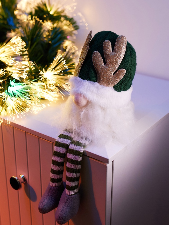 Фигура текстиль «Гном зеленая шапочка» 33 см, 1 LED, от батареек AG13×3, свечение тёплое белое