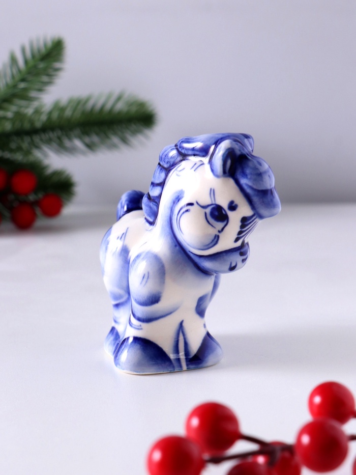 Откройте для себя уникальную фарфоровую фигурку «Конь Лёша», которая станет ярким акцентом в вашем интерьере. Эта миниатюра, выполненная в традиционном гжельском стиле, сочетает в себе изящество и символику, присущие русскому народному искусству, а её размеры 9×8.5×4 см делают её идеальной для любого пространства.