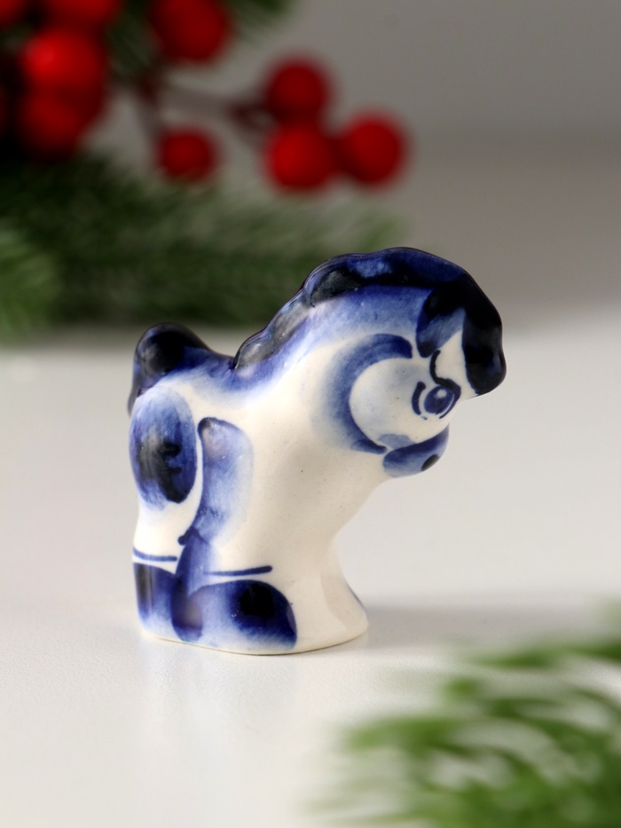 Фигурка посвящена символу 2026 года — Лошади, что делает её актуальным подарком и талисманом, способствующим привлечению удачи и новых возможностей. Изготовленная из высококачественного фарфора, она сочетает в себе прочность и лёгкость, а традиционная роспись гжельскими узорами придаёт изделию неповторимый художественный характер.