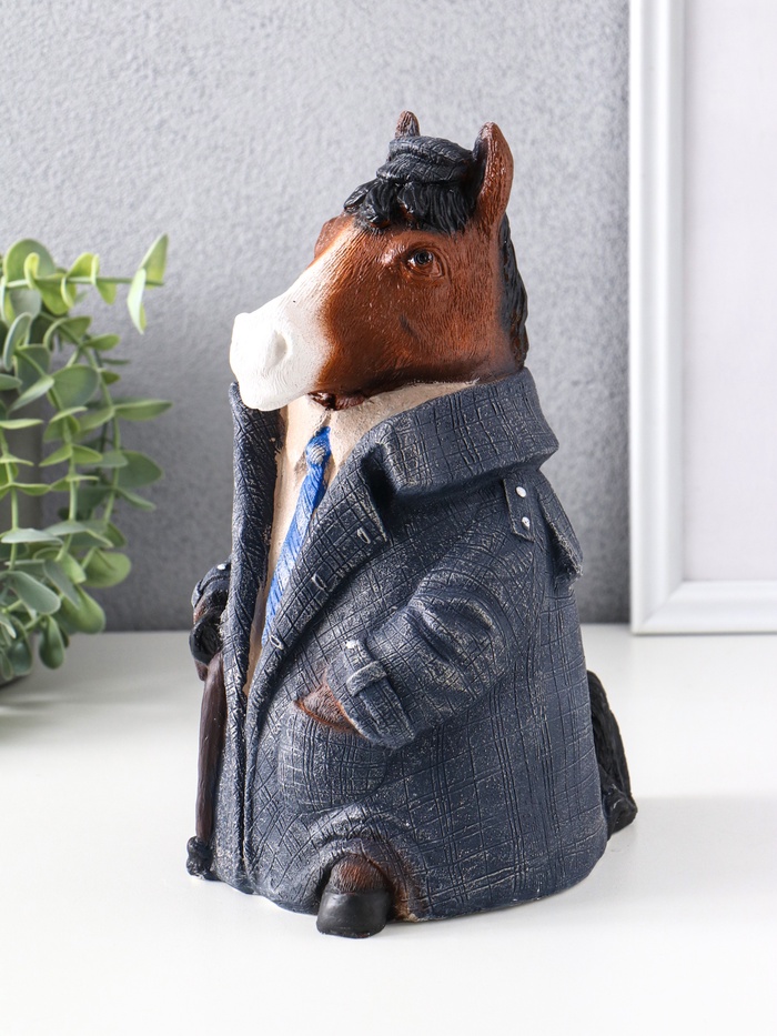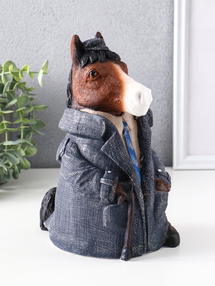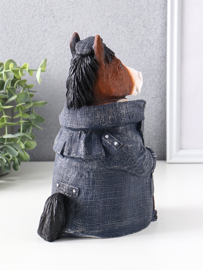 Эта гипсовая фигурка словно воплощает стиль и тренды, представляя коня в элегантном пальто, очерченного джинсовой расцветкой. С высотой 24 см и разноцветными акцентами она символизирует год Лошади, предлагая тематическую универсальность от новогодних декораций до повседневного уюта.