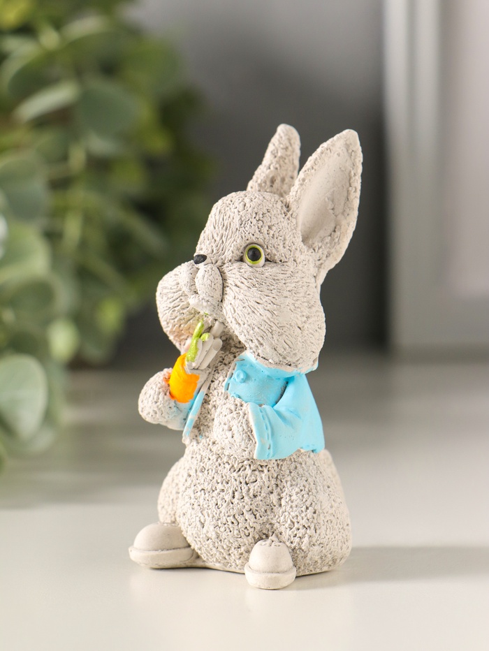 Серый гипсовый кролик с морковкой — это лаконичный символ весны и уюта. Фигурка станет тёплым пасхальным подарком или тихим напоминанием о простых радостях в интерьере вашего дома.