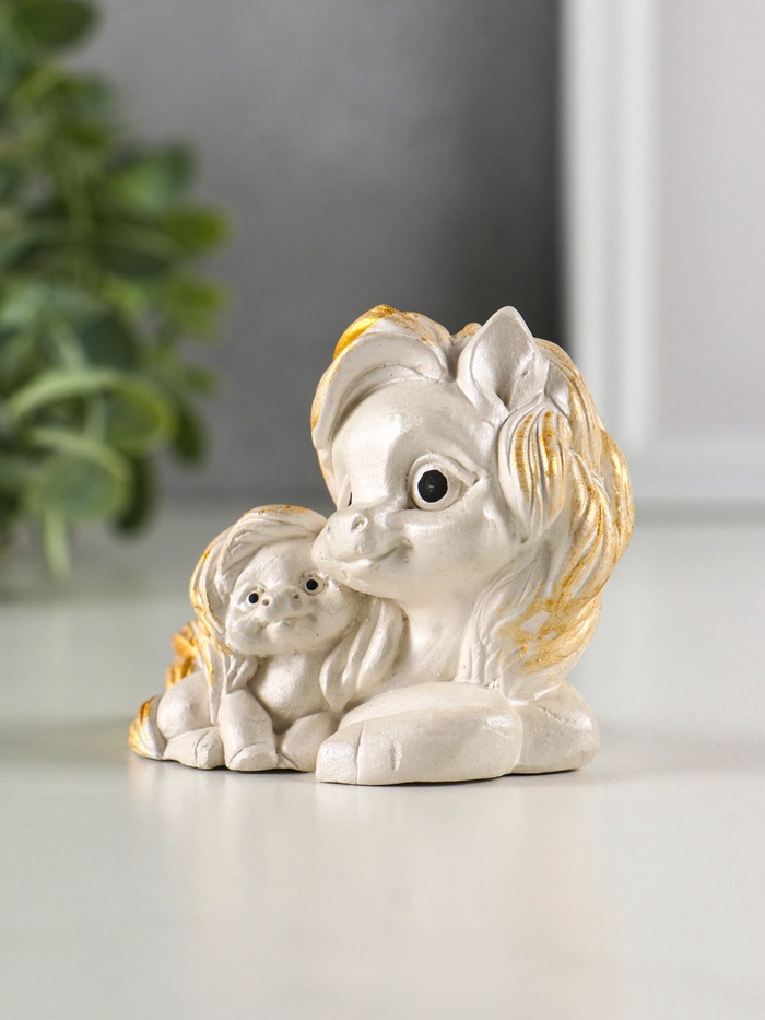Эта перламутровая гипсовая фигурка мамы-пони — универсальный символ нежности и заботы. Её мягкое сияние и плавные формы создают ощущение тепла и спокойствия, делая её желанным подарком для самых важных моментов.