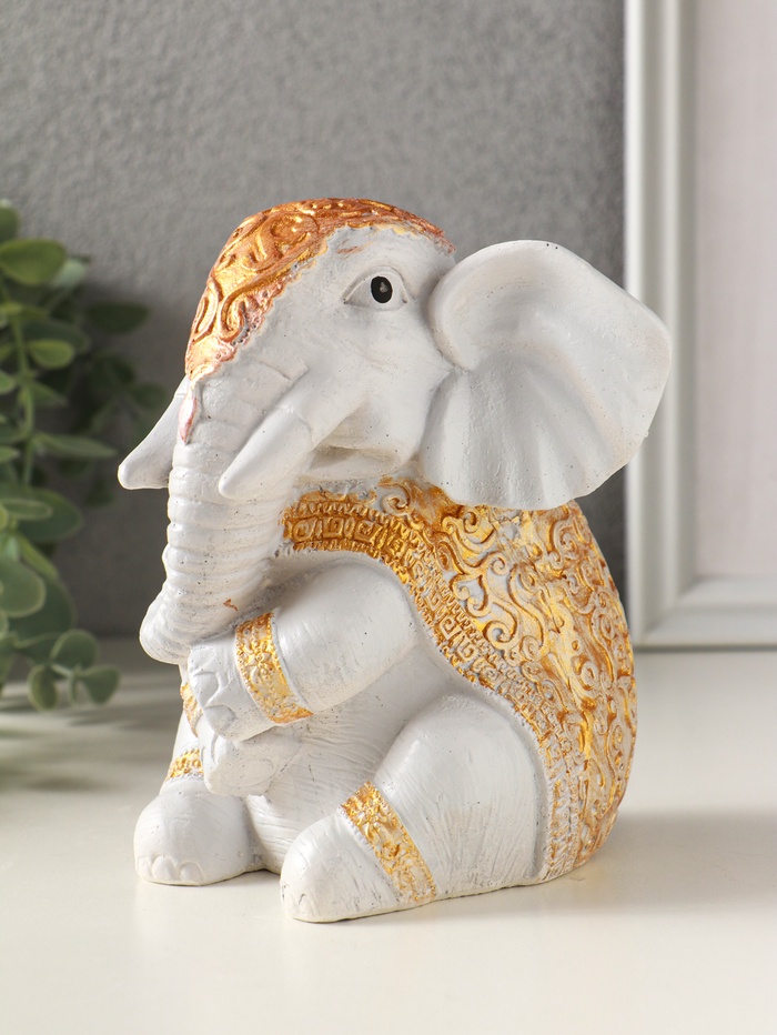 Серый гипсовый слон с золотой росписью — это элегантный акцент для интерьера, который приносит в дом атмосферу спокойствия и мудрости. Фигурка станет осмысленным подарком, символизирующим надежность, удачу и интеллект.