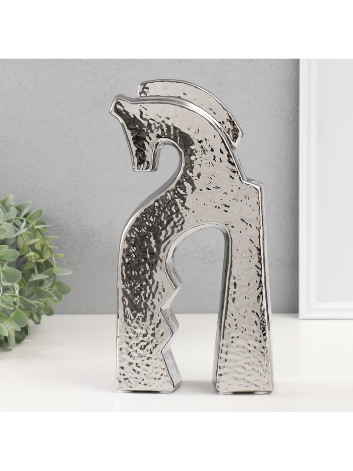 Эта серебристая керамическая фигурка лошади станет элегантным акцентом в интерьере или значимым подарком. Её динамичный силуэт и гальваническое покрытие передают мощь и грацию животного, создавая ощущение движения и свободы.