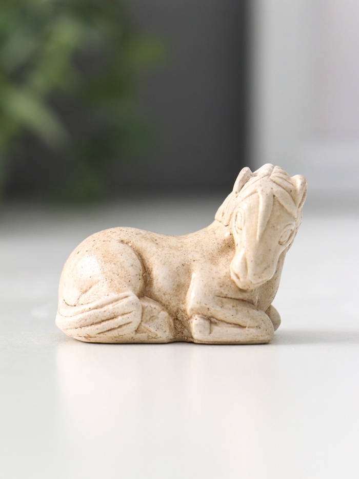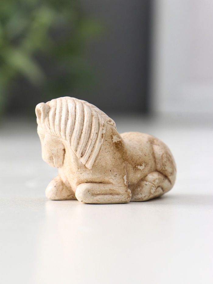 Откройте для себя маленькое произведение искусства, которое станет изысканным дополнением вашего интерьера или идеальным подарком для ценителей уникальных вещей. Эта миниатюрная фигурка-нэцкэ в форме отдыхающей лошади воплощает в себе гармонию природы и человеческой фантазии, создавая атмосферу спокойствия и умиротворения.