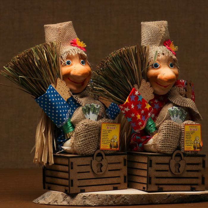 Этот необычный оберег привнесет в ваш дом атмосферу русских народных сказок и станет его настоящим хранителем. Фигурка Бабы Яги, восседающей на заветном сундуке, выполнена с удивительной детализацией и сочетает в себе несколько натуральных материалов.