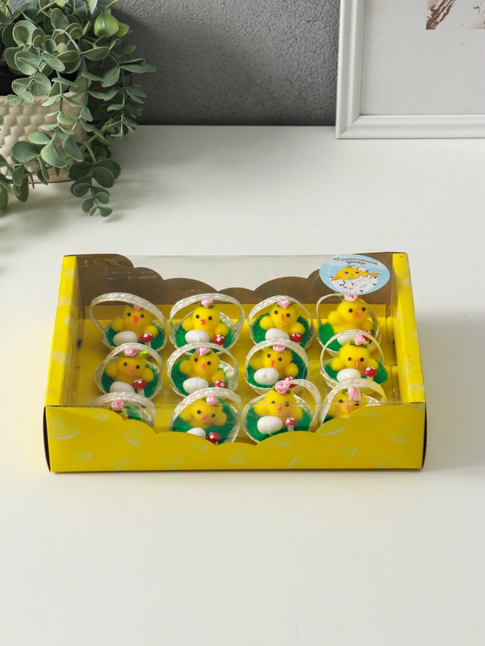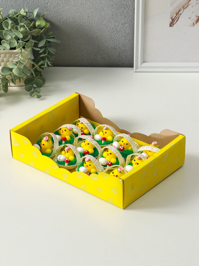 Фигурка пасхальная «Цыпа с яичком в корзинке с мухомором», набор 12 шт., 5×5×5 см