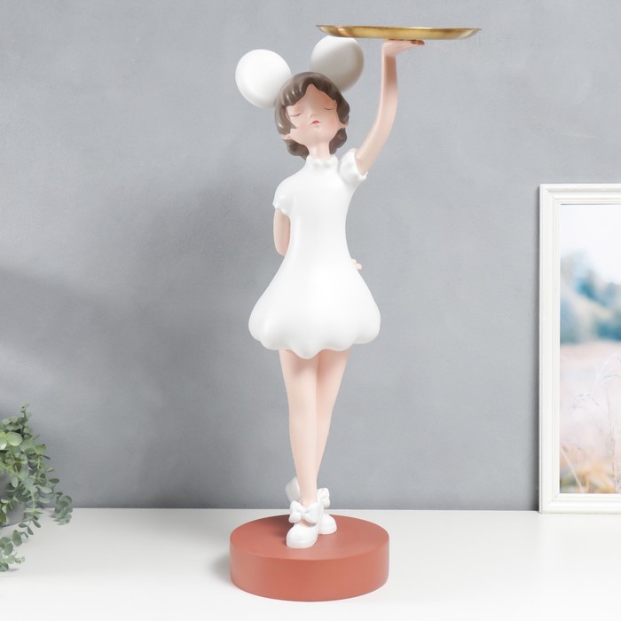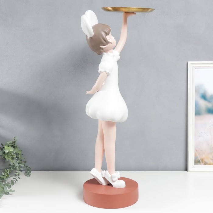 Изготовленная из качественного полистоуна, фигурка отличается прочностью и долговечностью. Тщательно проработанные детали - от милых ушек до складок на платьице - демонстрируют высокое качество исполнения. Блюдо в руках фигурки - это не только элемент дизайна, но и удобная подставка для хранения мелочей.