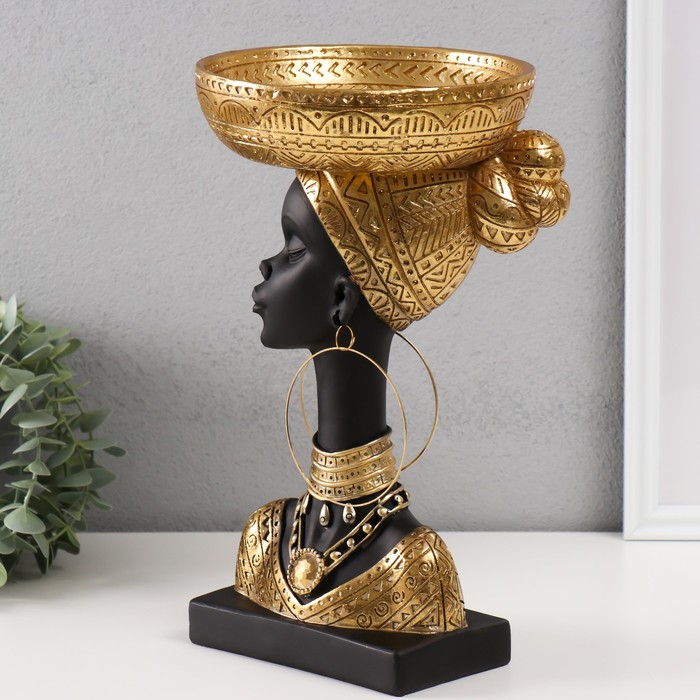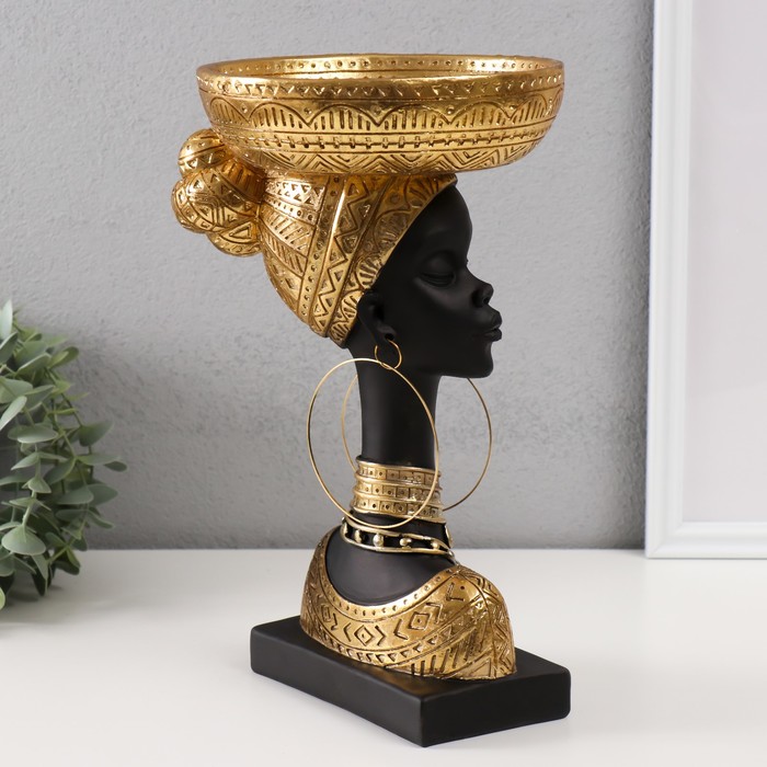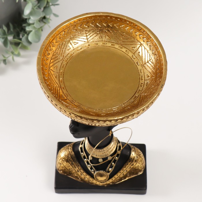 Фигурка-подставка для мелочей полистоун «Африканка с золотой тарелкой на голове», 30×17×17 см