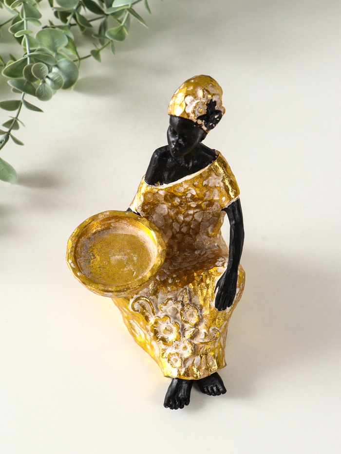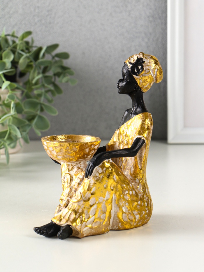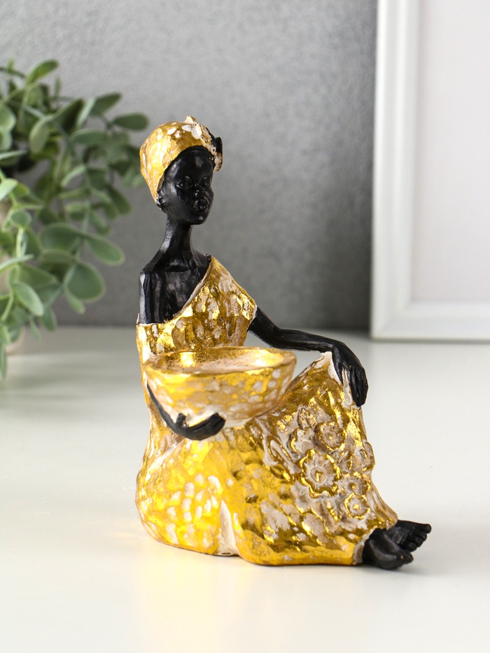 Фигурка-подсвечник на 1 свечу «Африканка в золотом платье с цветами», полистоун, d=4.5 см, 10.5×12×16 см