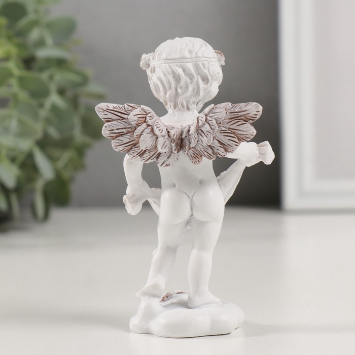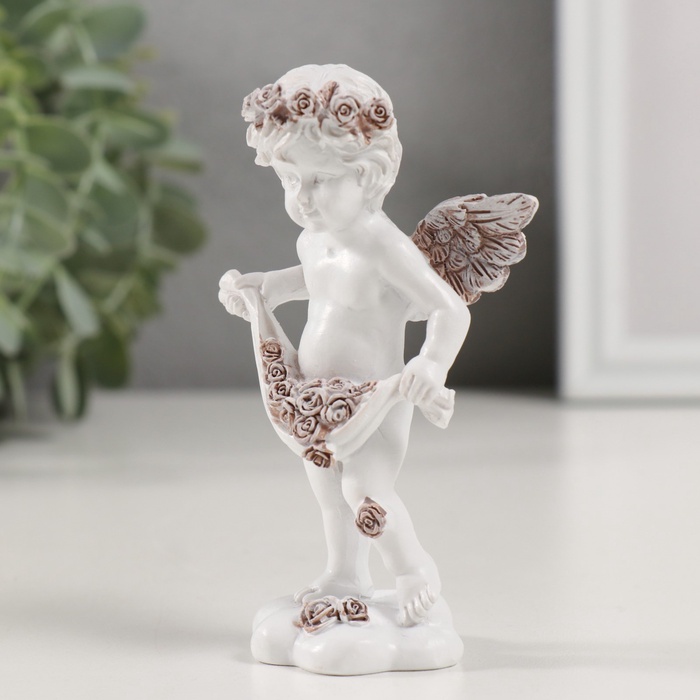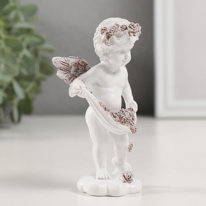 Фигурка полистоун «Ангелочек с лепестками роз», кофейный венок, 6.5×4×10.5 см