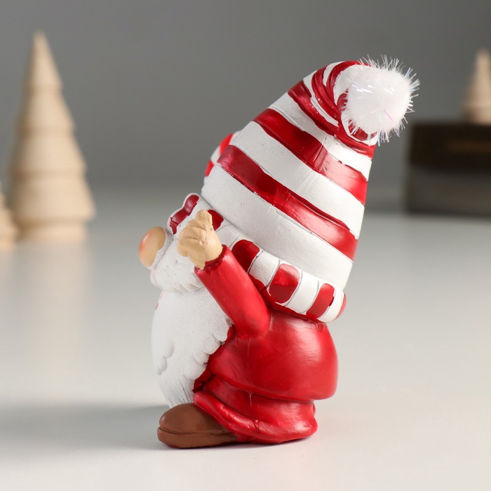 Фигурка полистоун «Дед Мороз в белом колпаке в красную полоску, с леденцом», 9×6.5×10 см