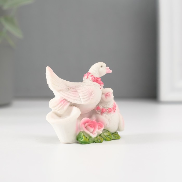 Фигурка полистоун «Голуби на книге в розовом венке», 4×6 см