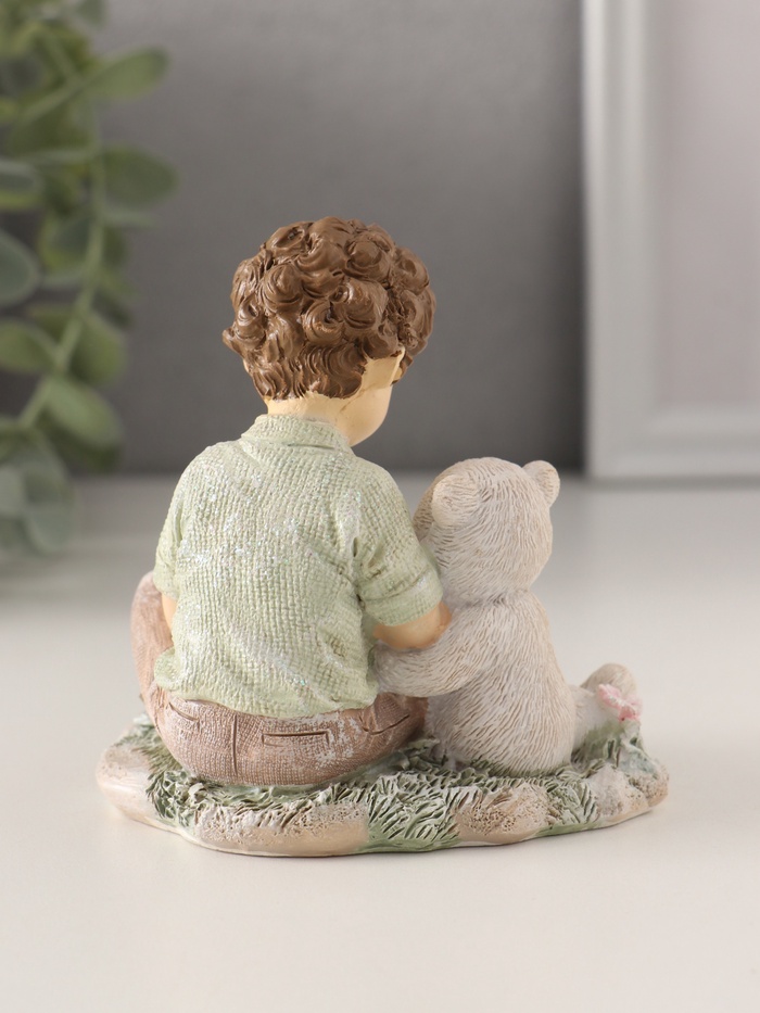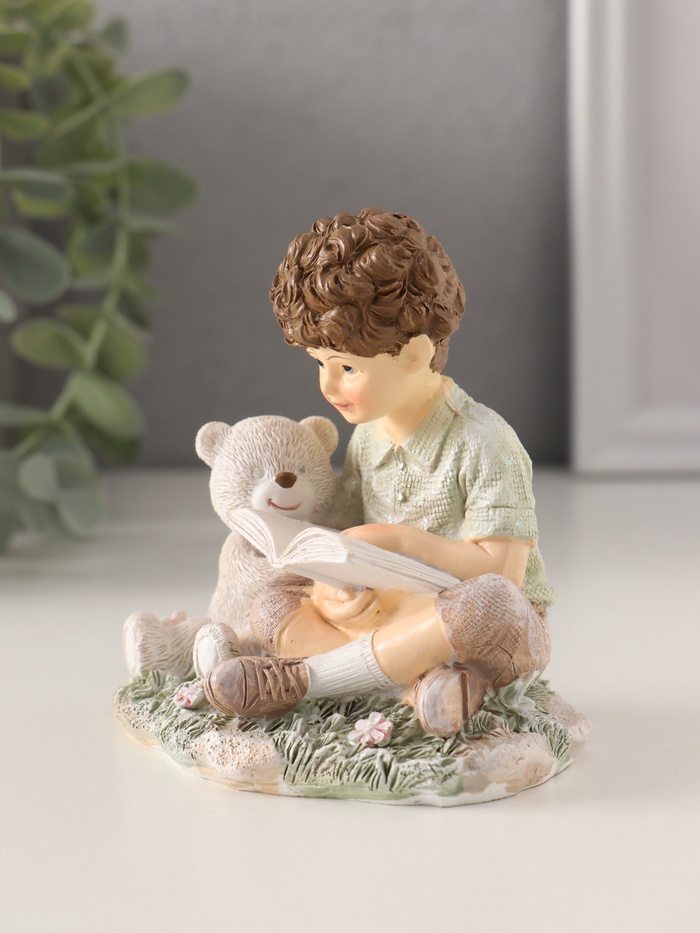 Позвольте себе окунуться в атмосферу детской нежности и воображения с очаровательной фигуркой, изображающей кудрявого мальчишку, который читает книжку своему медвежонку. Этот декоративный элемент станет настоящим украшением вашего дома, наполняя пространство теплом и уютом. Разноцветное покрытие добавляет изделию яркости и делает его универсальным акцентом в любом интерьере.
