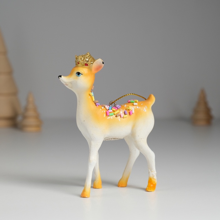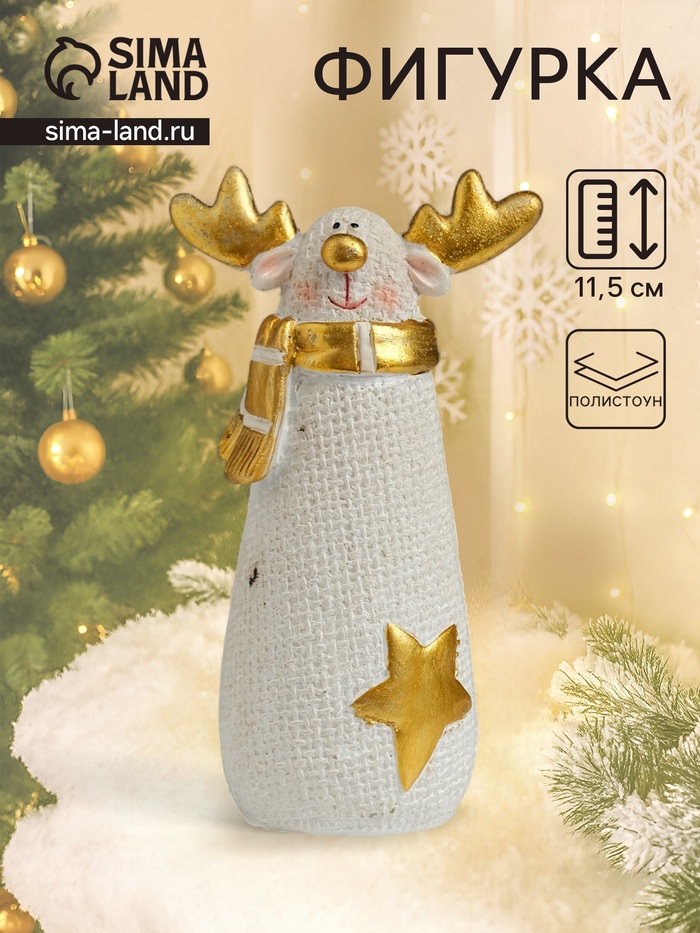 Фигурка выполнена в белых тонах с элементами декора, что делает её универсальным дополнением как для новогоднего декора, так и для повседневного интерьера. Олень символизирует благополучие, уверенность и гармонию, привнося в пространство атмосферу тепла и уюта. Универсальный дизайн позволяет использовать её как самостоятельный элемент декора или как часть праздничной композиции.