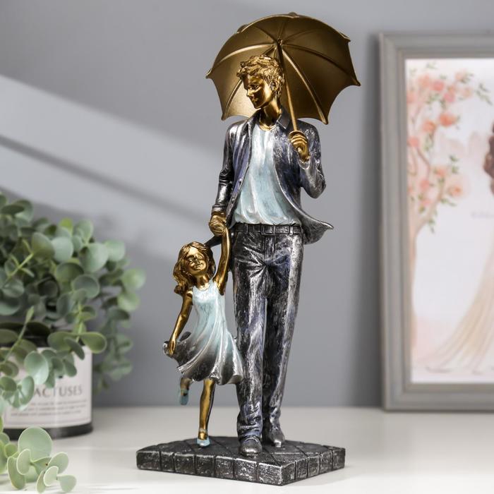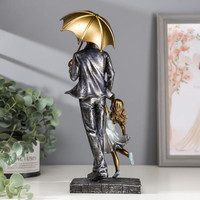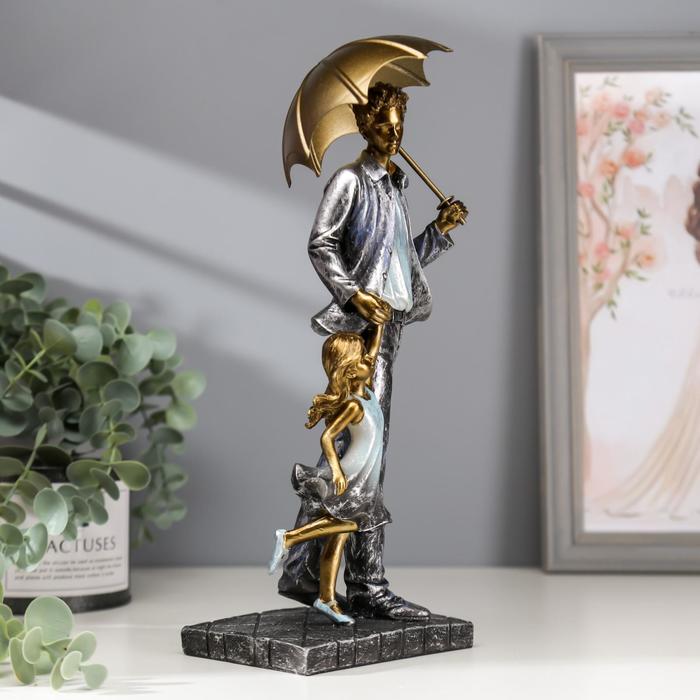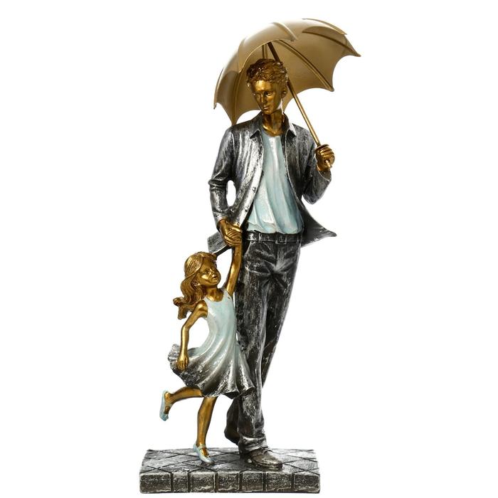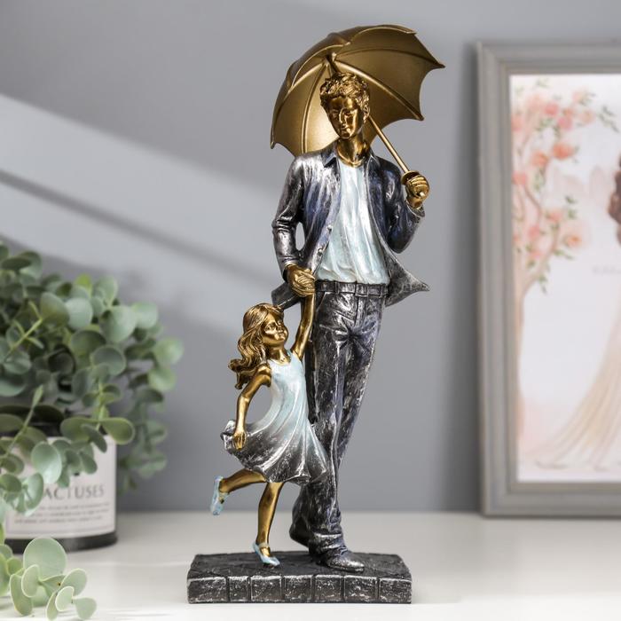 Трогательная скульптура, запечатлевшая момент тепла между отцом и дочерью, станет сердечным акцентом в вашем интерьере. Выполненная из прочного полистоуна в благородной сине-бронзовой гамме, эта композиция высотой 28 см передаёт всю нежность совместной прогулки под зонтом.