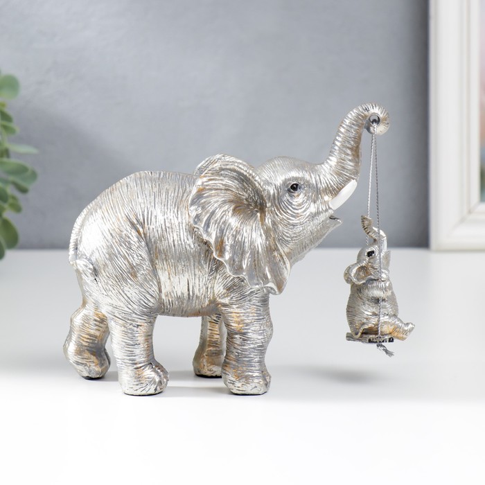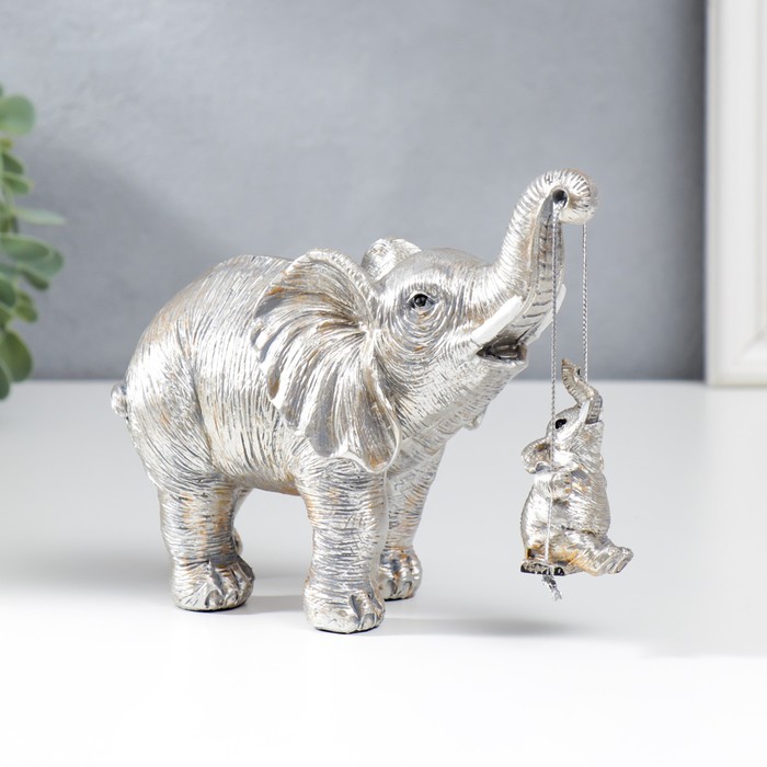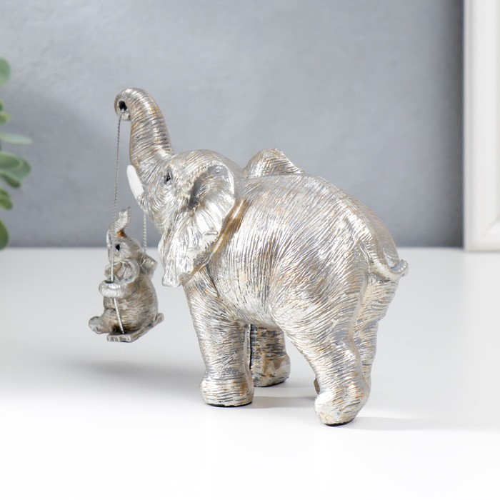 Фигурка полистоун «Слон качает слонёнка на качелях», под серебро, 14.5×8×18 см