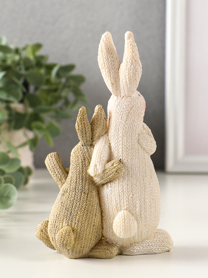 Эта вязаная фигурка кролика с малышом создаёт атмосферу домашнего тепла и уюта. Композиция, где заботливая мама-зайчиха обнимает своего ребёнка, говорит о семейных ценностях без лишних слов. Она станет тёплым подарком, который напоминает о самом главном.