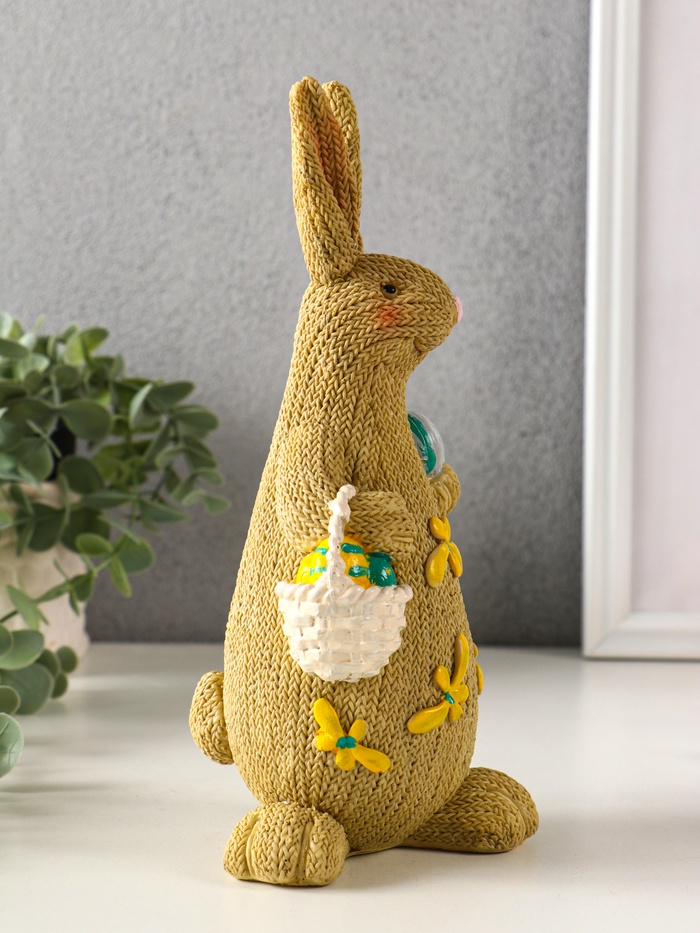 Эта фигурка зайки с пасхальными яйцами станет тёплым дополнением праздничного декора. Она создаёт особое, уютное настроение, напоминая о приятных подарках и семейных традициях.