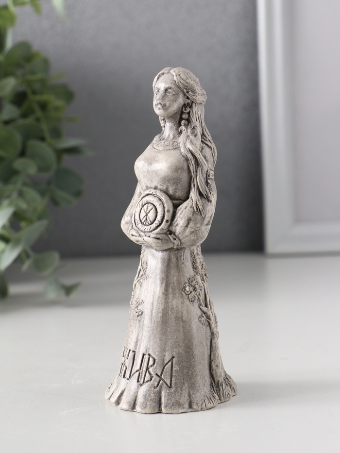 Воплощение весеннего возрождения и животворящей силы! Статуэтка славянской богини Живы — это изящное напоминание о вечном цикле природы, исполненное в сдержанном сером цвете. Фигурка передает глубину древней традиции и служит универсальным символом жизни, обновления и женской энергии.