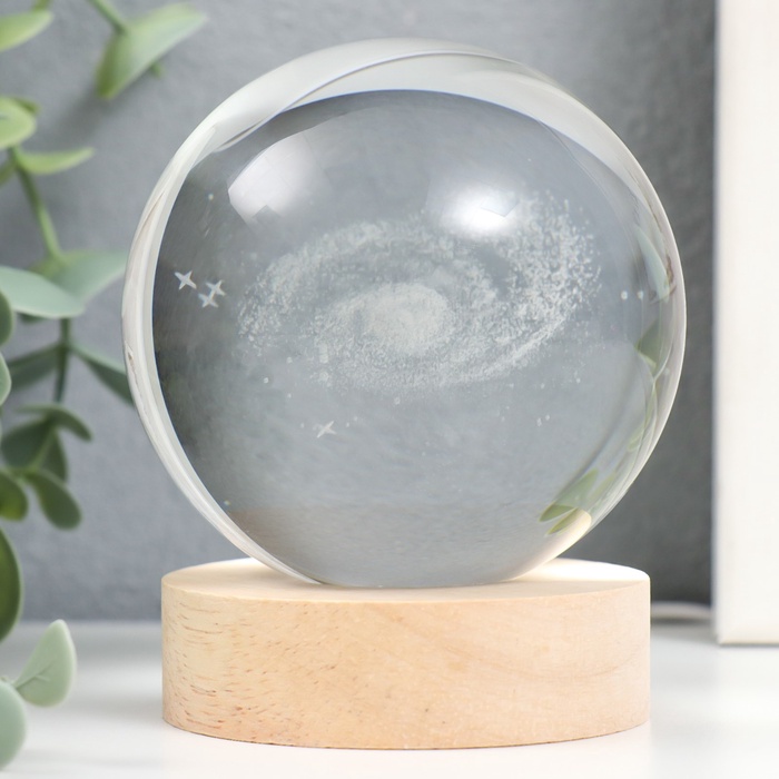 Фигурка светящаяся «Голограмма: Млечный путь», шар стекло d=8 см, подставка дерево, USB-ночник, 8×8×9.5 см