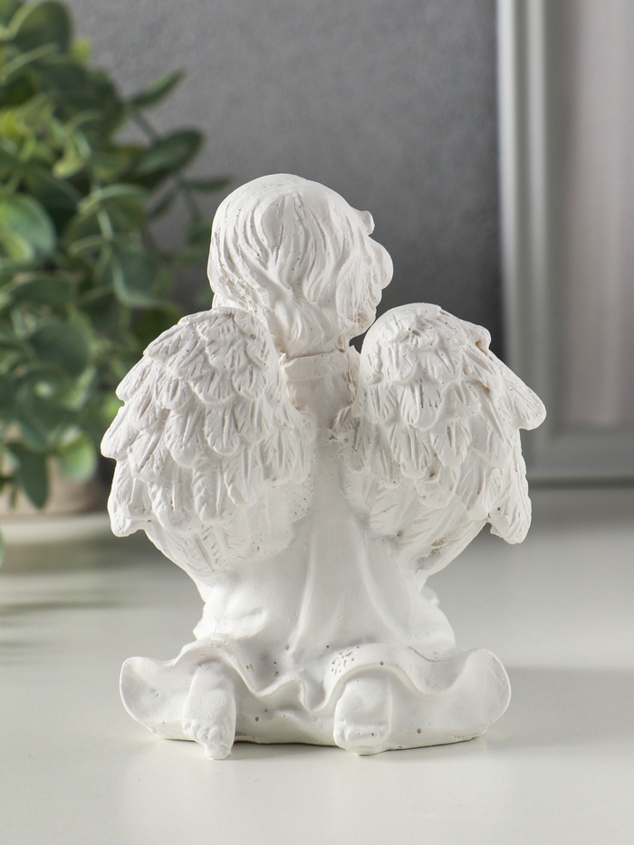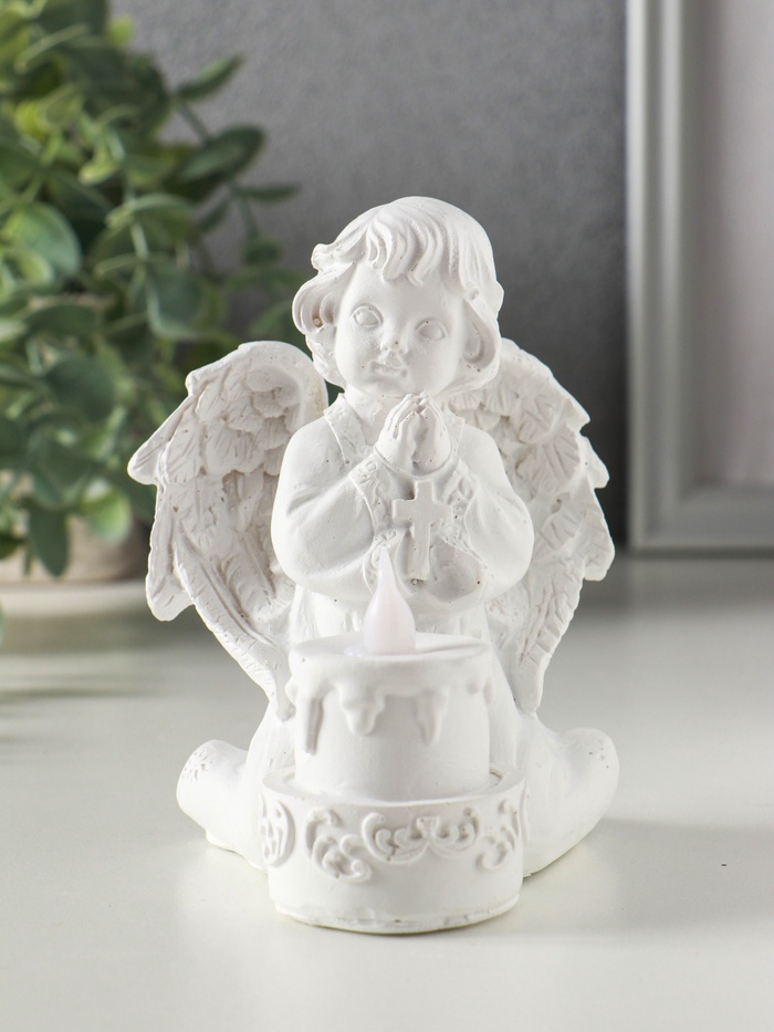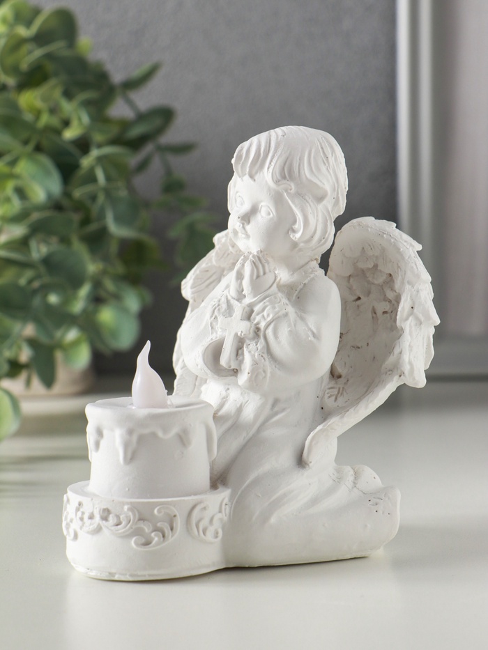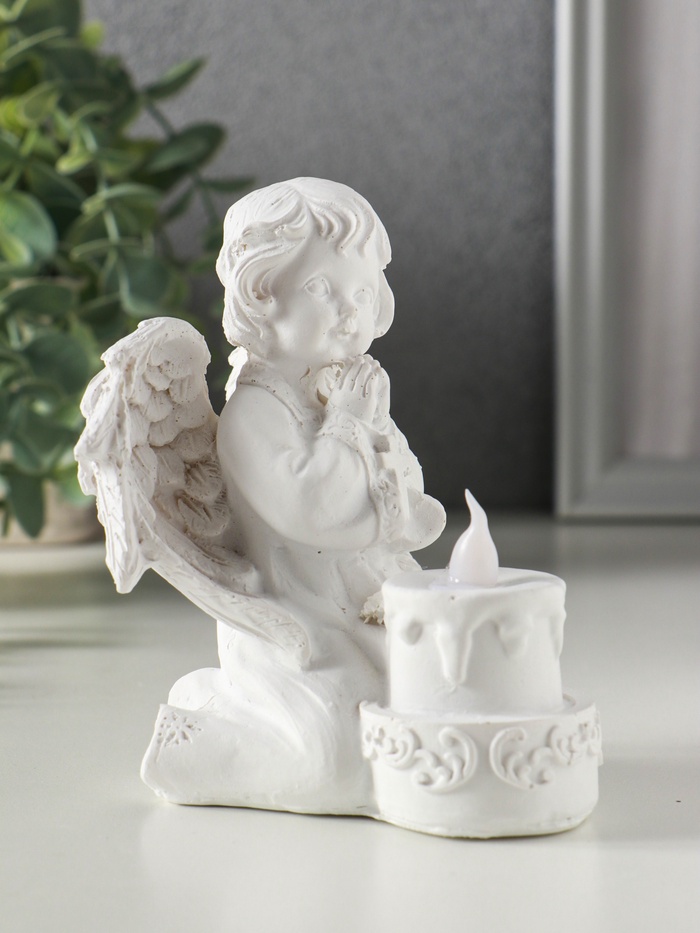 Фигурка светящаяся полистоун «Белоснежный ангел с двухъярусным тортом», 7.7×8.5×11.5 см