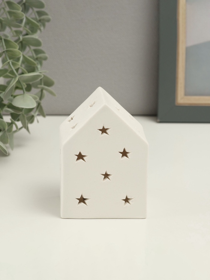 Фигурка «Домик со звёздочками» — это очаровательный и функциональный элемент декора, который принесет в ваш дом атмосферу уюта и волшебства. Изготовленная из керамики, эта фигурка не только украсит ваше пространство, но и создаст мягкое свечение, наполняя комнату теплом и уютом.