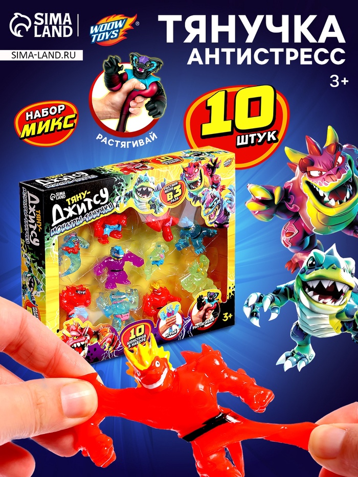 Подарите юному герою целую коллекцию антистресс-тянучек «Тяну-Джитсу»! В наборе вы найдёте 10 фигурок, которые можно растягивать так, как душа пожелает. Не переживайте о том, что игрушка порвётся — она сделана из качественного и эластичного материала.