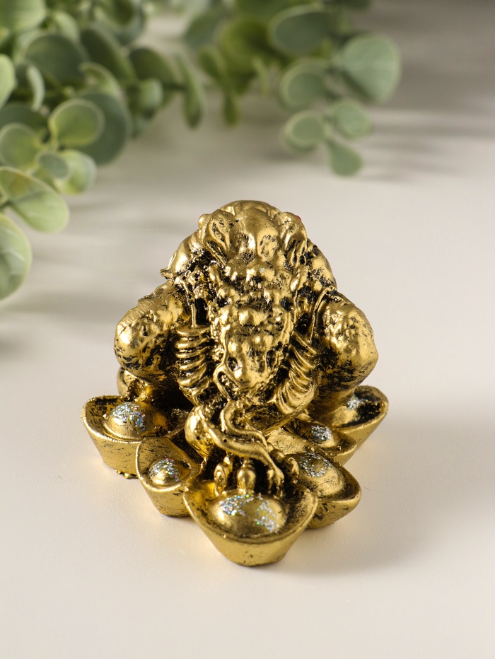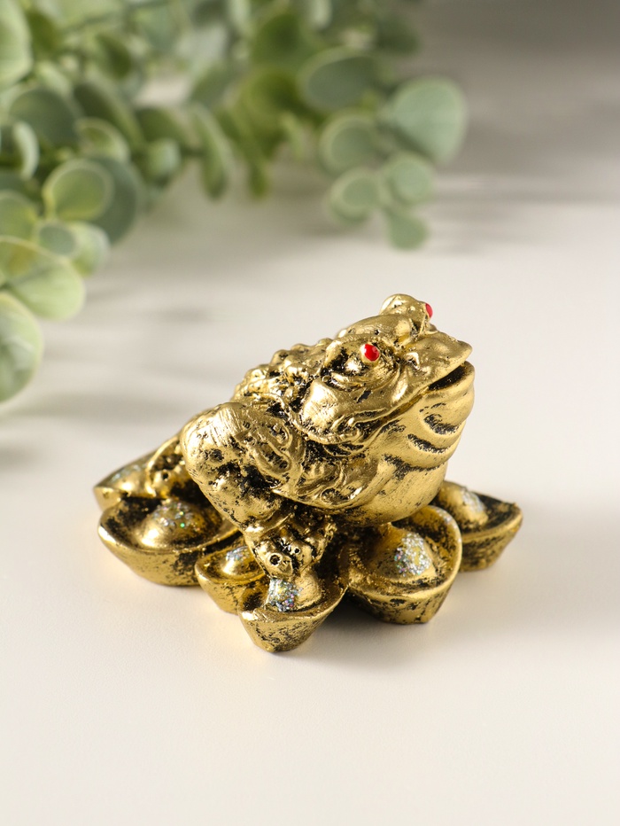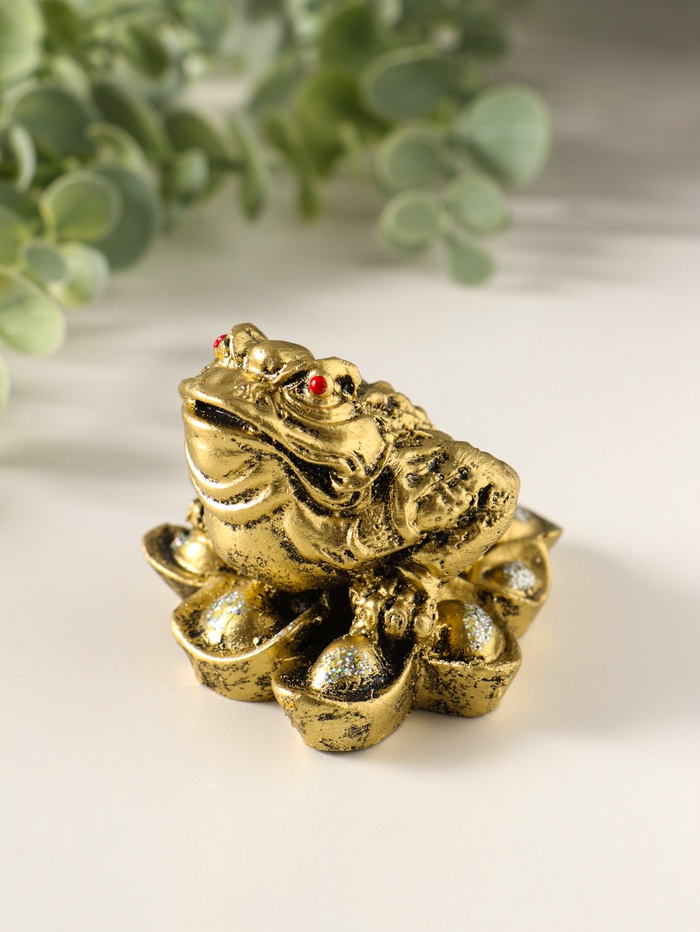 Эта золотая жаба — классический символ, привлекающий энергию богатства и удачи в делах. Компактная фигурка из полистоуна гармонично впишется в интерьер кабинета, офиса или домашнего пространства, создавая атмосферу стабильности и финансового роста. Универсальный дизайн делает её уместным подарком на новоселье, открытие бизнеса или для коллеги.