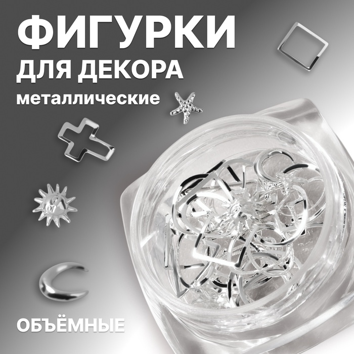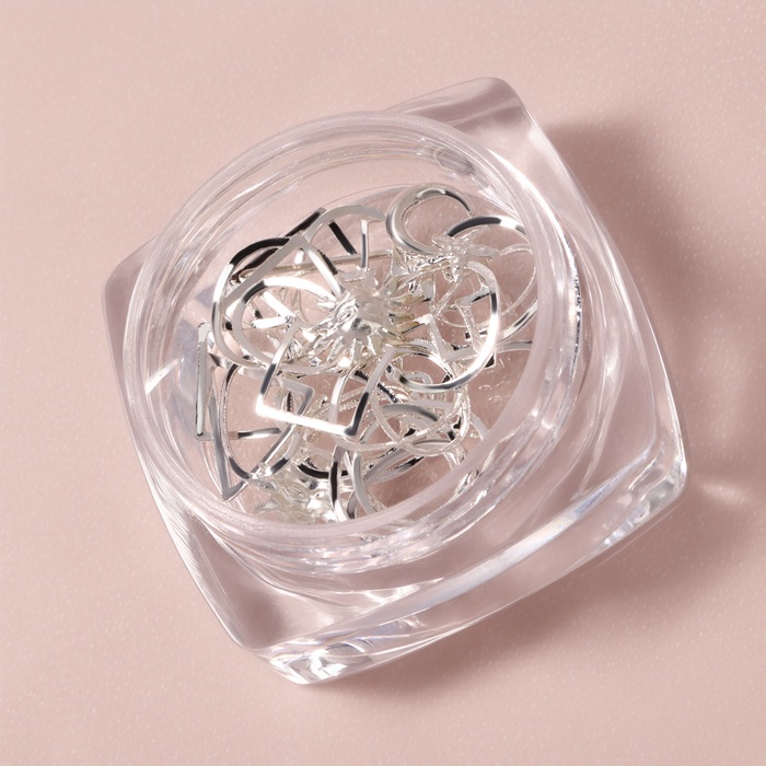 Добавьте изюминку вашему маникюру с объёмными металлическими декоративными элементами от бренда Queen fair! Эти серебристые фигурки станут идеальным акцентом для любого дизайна, придавая ногтям утончённость и оригинальность. Каждая фигурка выполнена из металла, что делает их удобными в использовании и долговечными.