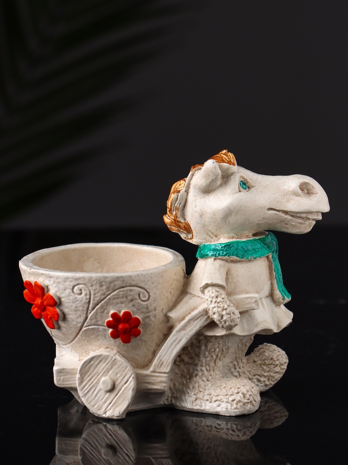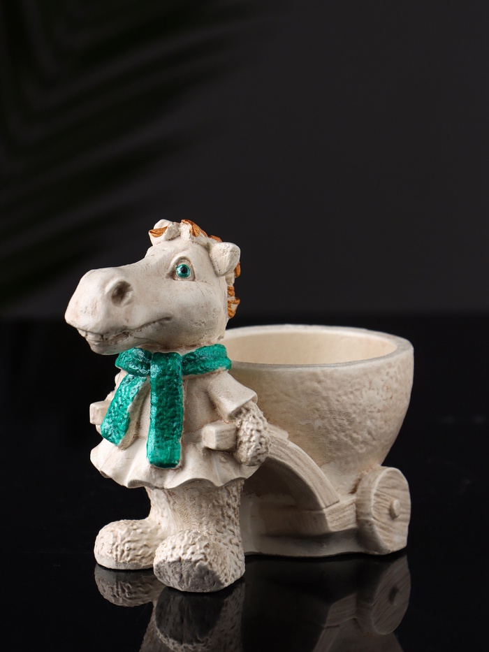 Представляем изящное кашпо в виде лошади с тележкой, которое станет не только функциональным элементом вашего интерьера, но и его ярким акцентом. Изготовленное из высококачественного гипса, это изделие отличается прочностью и долговечностью. Бежевый цвет добавляет ему нотку элегантности и универсальности, позволяя гармонично вписаться в любое пространство. Компактные размеры (10×10×6 см) делают его идеальным для размещения на столе, полке или подоконнике.