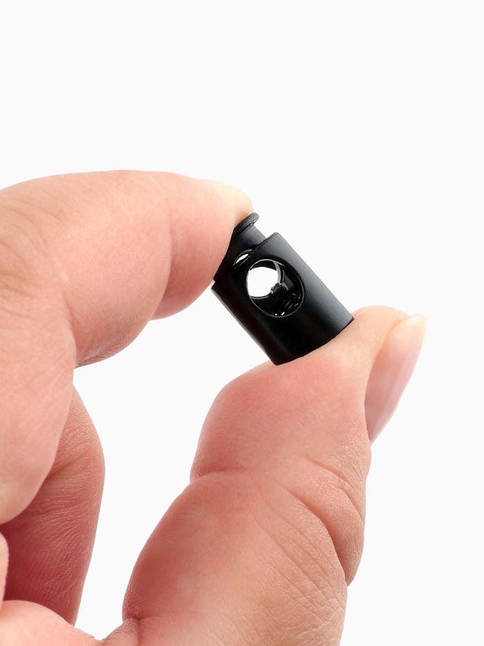 Фиксаторы незаменимы при пошиве верхней, детской, спортивной и спецодежды, товаров для спорта и туризма, галантерейных товаров, обуви и рюкзаков. Они просты в применении: внутри каждого стоппера есть пружинный механизм, благодаря которому шнур закрепляется одним нажатием на кнопку.