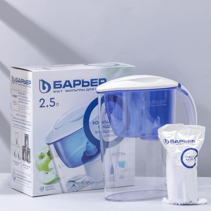 Фильтр-кувшин для воды «Барьер. Экстра» — изготовлен из высококачественного пластика BASF, допущенного для контакта с питьевой водой. Автоматически открывающаяся воронка защищает от попадания пыли в отфильтрованную воду. Допускается мыть в посудомоечной машине. Компактный кувшин можно разместить на дверце холодильника — это чистая и прохладная вода всегда под рукой.