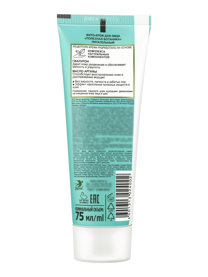 Фито-крем для лица "Полезная ботаника" Питательный, туба 75 мл