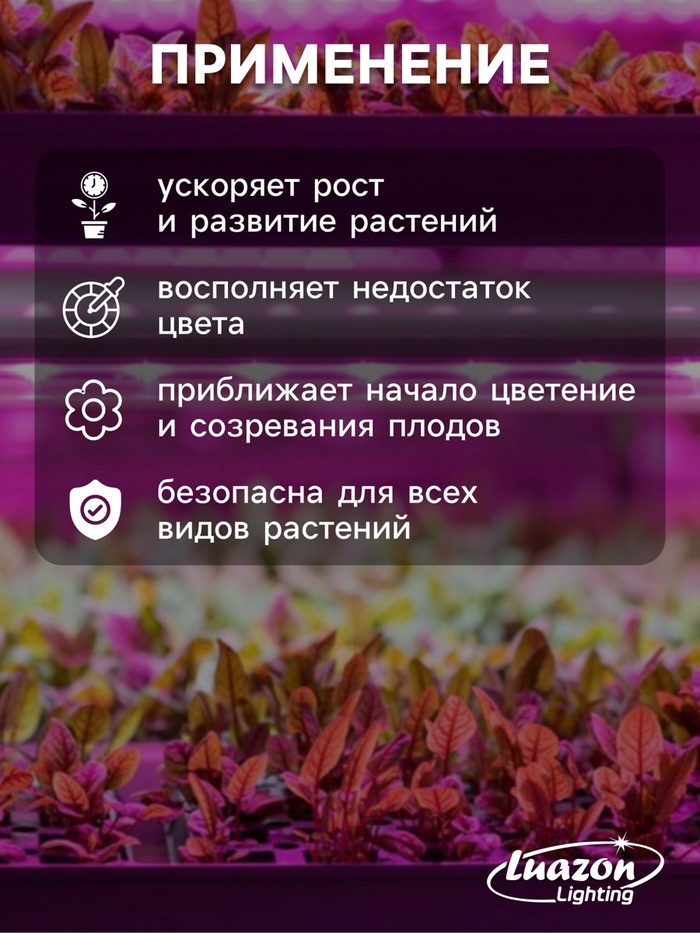 Данная фитолента подарит вашим растениям идеальное освещение для роста и развития — это компактное и эффективное решение, которое поможет вам создать оптимальные условия для зелёных питомцев даже в самых неблагоприятных условиях. С мощностью 6.2 Вт, она обеспечит нужное количество света для ваших растений, особенно в зимний период или в помещениях с недостаточной естественной освещенностью.